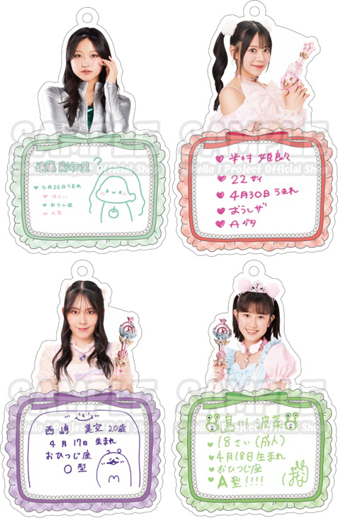 ダイカットアクリルキーホルダーには、メンバーのビジュアルと直筆プロフィール入り。